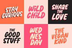 Available in both SVG and regular fonts with subtle texture and imperfections on the edges. It’s slanted, super dynamic and energetic! Use it to create eye-catching headlines, branding and advertisements. Looks great for food and fashion content. You can also create fun and quirky wordy greeting cards! It’s super versatile!