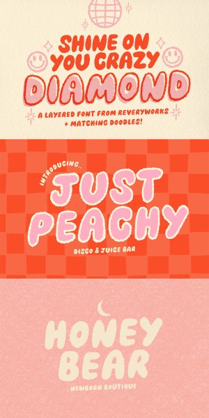 Shine on your Crazy Diamond! – Here is to hoping every time you use this font you are fearlessly bold! It’s voluptuous with fun texture on the edges. Includes two fonts and a matching set of groovy illustrations. Have fun experimenting with all the ways you can use it!